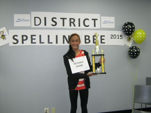 Congratulations to Hannah Dela Cruz, 5th grade Homeschool student and first place winner at Springs’ school-wide spelling bee.
