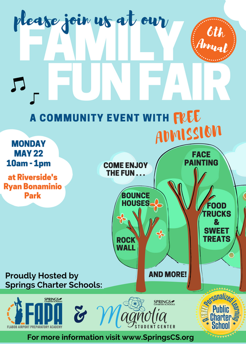 Please join us at our 6th Family Fun Fair on Monday, May 22, from 10:00 a.m. to 1:00 p.m. at the Riverside’s Ryan Bonaminio Park.