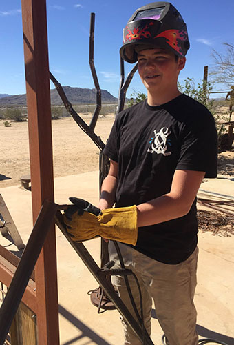 Eighth grade Homeschool student Cole Banas, 14, of Joshua Tree is a budding sculptor. He began at age 10 and uses metal and wood materials he finds to create such works of art as flowers and human figures.