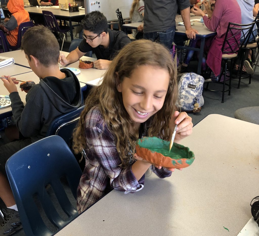 Additionally, Mrs. Janeway’s 4th and 5th-grade students learned about the solar system by making planets out of papier-mâché, working together to ensure that the planets were the right size and colors. In Mrs. Van Schaik’s 6th grade class, students made vases and pottery using terra cotta clay used by ancient Greeks.