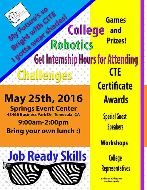 11th and 12th grade Springs students are invited to attend the CTE Certificate Awards on May 25. Workshops, guest speakers, games, prizes and more!
