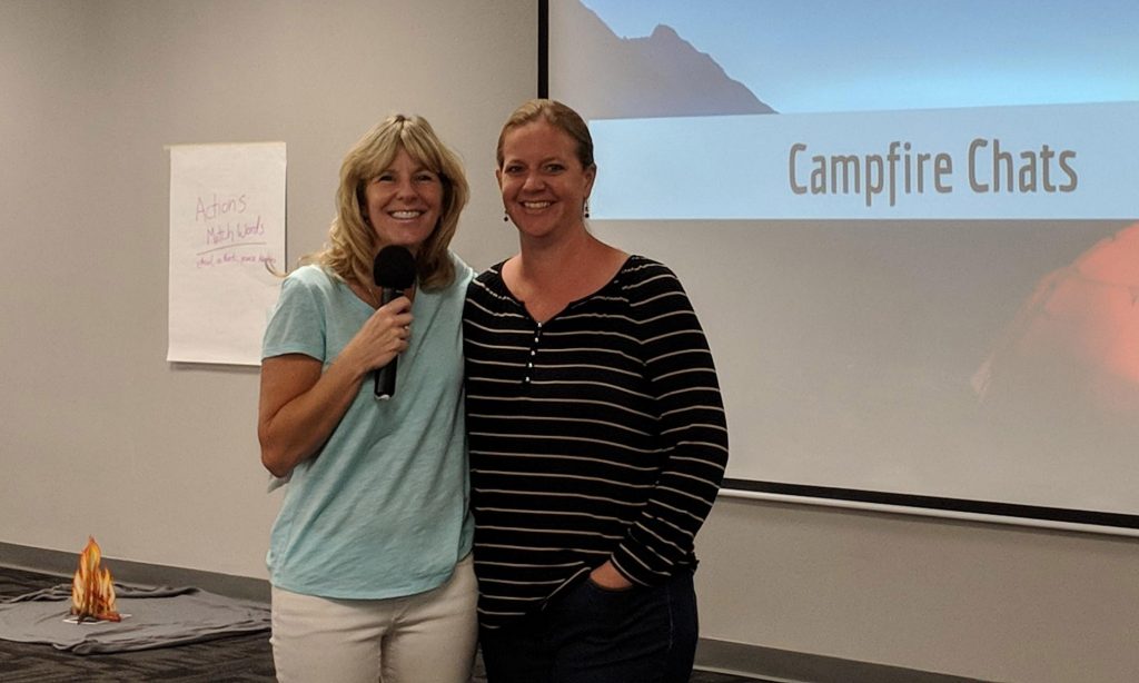 Homeschool Education Specialist Esther Yanez (right) received a Happy Camper award from Jackie Dee, Homeschool Director, at the Homeschool staff development meeting in September.