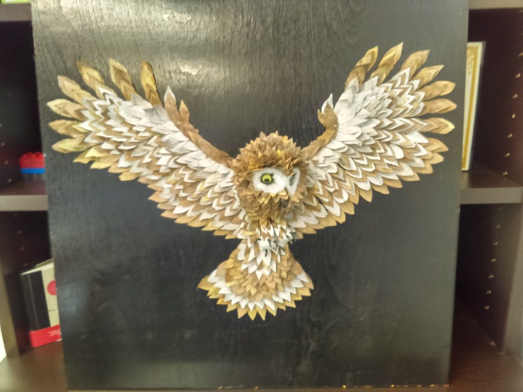 Eileen Solorzano, 13, a former 9th-grade student at Magnolia Student Center, is an “amazing artist,” said her principal, Beverly Voechting. One of her most impressive recent creations is an owl made with leaves (pictured).