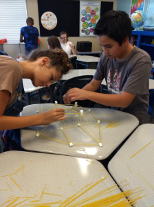 Students in Montessori Middle School in Murrieta ended their first cycle of work, reported Program Facilitator Thomas Essel, and celebrated their “intersession” week by building spaghetti/marshmallow structures, playing games and taking a field trip to Rock Fitness.
