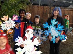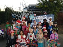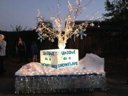 The parade featured decorated, non-motorized vehicles traveling through Historic Downtown Murrieta as crowds cheered them on.  Tiffiny Aery, who teaches 7th and 8th grade for the Classical Homeschool Academy, and her husband Chris created the Springs float, which was entitled “Every student is as unique as a snowflake.”