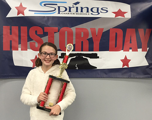 “This is a great opportunity to teach our students to bring a large research project to fruition which is a powerful life skill to have as they enter the workplace,” said Jessica McIntyre, a Springs Education Specialist and parent. Her daughter, Agatha, is among those heading to State Championships with a performance piece at the junior level called “Boudicca, the Warrior Queen: A Bard’s Retelling.”