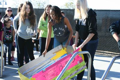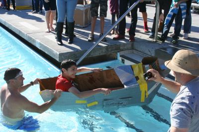 Students at the Otay Ranch Academy for the Arts were given the challenge of building a seaworthy boat from cardboard and tape on March 5. The boats held a single student, and were raced across a high school pool. The goal was to have a watertight boat that could make it across the pool. Parents were invited to come and cheer their children on. After the event, students participated in a Socratic seminar to discuss what they learned.