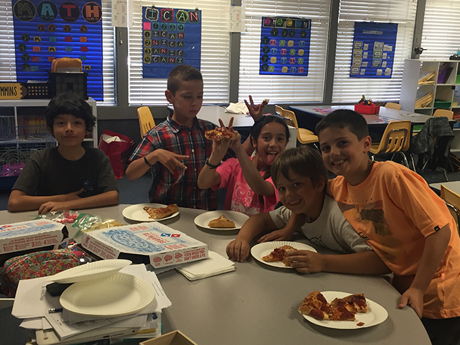 Pizza Party for 100% progress in ST Math Posted on June 13, 2017 by andrea.pasolini Mrs. Cummins, our 3rd-grade teacher, offered a pizza party to any students who were able to reach 100% progress in ST Math. She had six kids reach 100%, and one of her 3rd graders reached 100% in 4th-grade math! Way to go Students!