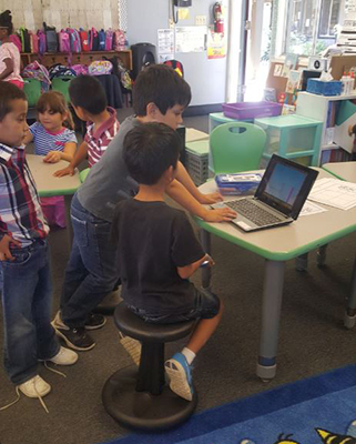 Wiggle chairs are stools with slightly rounded bottoms that allow students to wobble back and forth without falling over. The students were using stability balls, reported Principal Monica Lopez, but at the beginning of the year as students were still learning to use them correctly “they get excited and try bouncing as high as they can.” Ms. Look showed students different options for flexible seating and they all agreed that they wanted the stools. The stools benefit the students because they like to lift their feet off the floor while they are sitting and wiggle around; the stools are designed to allow students to sit without forcing them to keep their feet on the floor and they will never fall over or hit their heads.