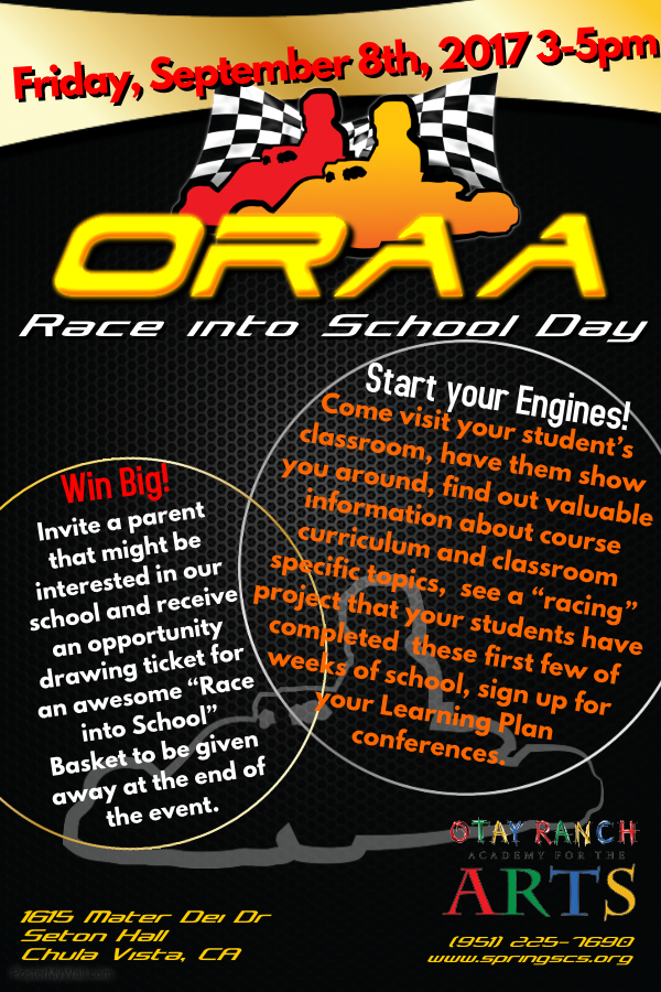Race into School Day Posted on September 5, 2017 by andrea.pasolini Start your engines and race into School Day on Friday, September 8, from 3:00 to 5:00 p.m.