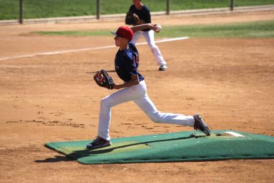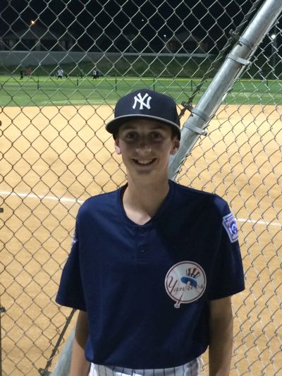 He plays both travel ball and little league.  He pitches, catches and plays first base.  He practices or has a game four times a week.  He hopes one day to be a sports writer.