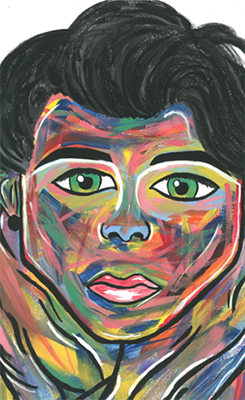 This is her first year painting. To paint, she works with hair brushes, acrylic paint, oil paint, pastels and, most important, a pencil and an eraser! Her favorite subject in school is English. Besides art, she enjoys music, theater, cosmetics and volleyball.
