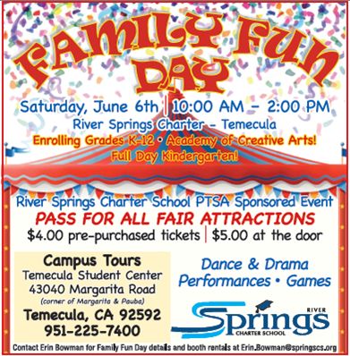 The Temecula Student Center of Springs Charter Schools will host their annual Family Fun Day Fair on Saturday, June 6, from 10:00am to 2:00pm.