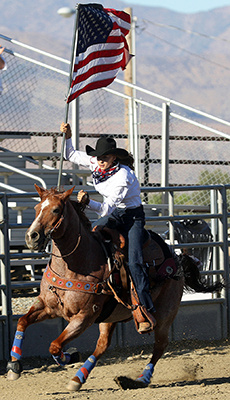 She competed in team roping, breakaway roping and light rifle shooting, placing 11th in the State in breakaway roping. She also competes in open rodeos, jackpot barrel races and team roping. She is the San Bernardino Sheriffs Rodeo Jr. Queen.