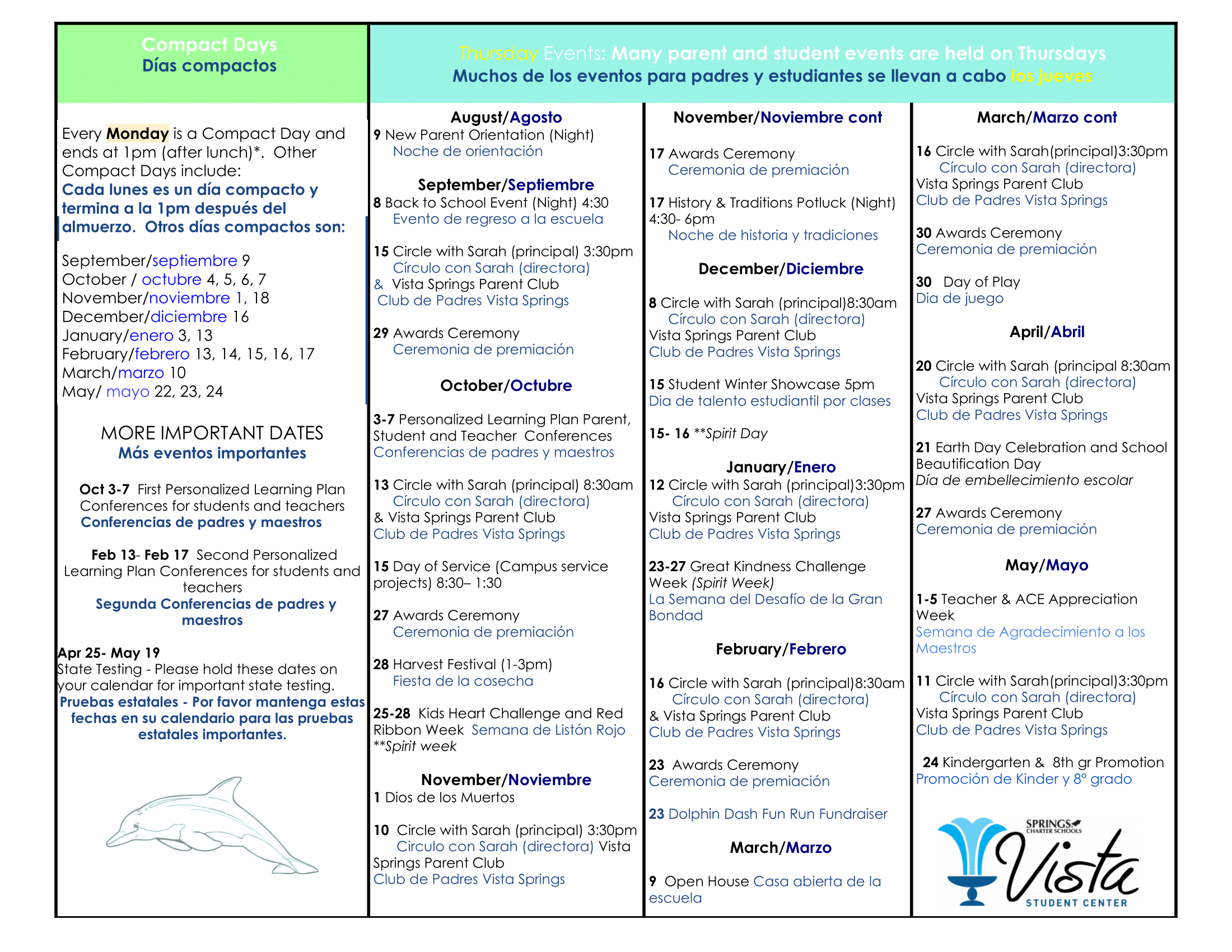 2022-2023 Vista Springs Charter School Calendar & Daily Schedule