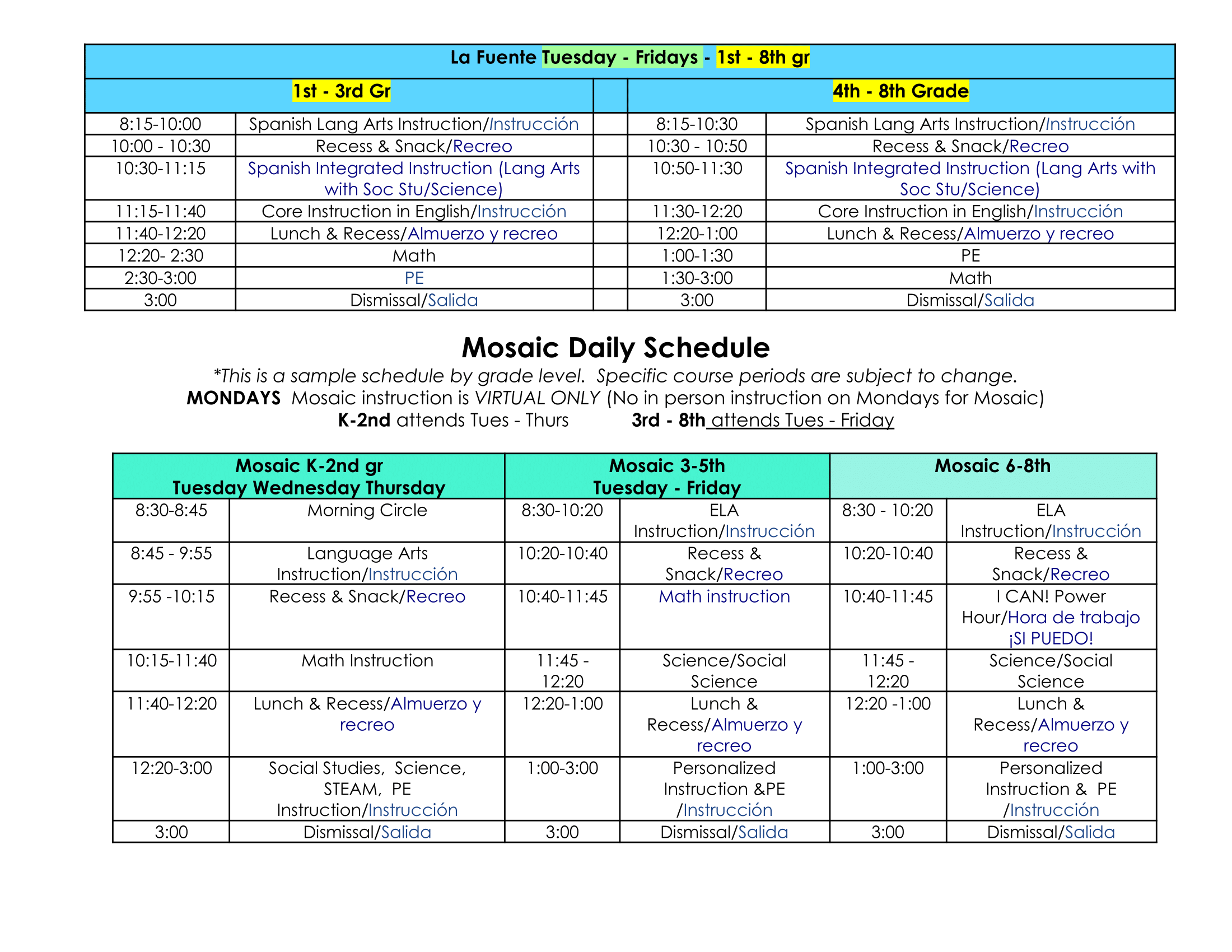 2022-2023 Vista Springs Charter School Calendar & Daily Schedule